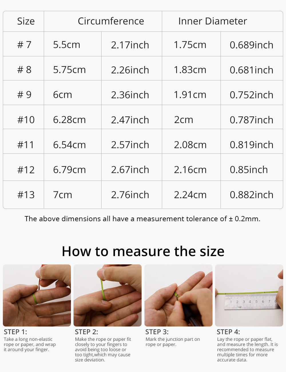 Colors: Rose Gold, SilverSize: Rose Gold: 7, 8, 9, 10. Silver: 7, 8, 9, 10, 11, 12, 13.